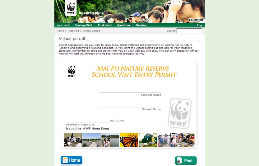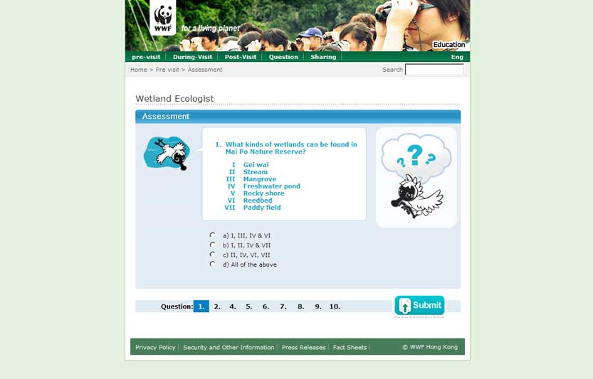 在考察活動後使用。學生在此可知道對米埔的認識增加了多少。透過回想旅程中,遇到一些特別的野生生物, 還有米埔自然保護區的美麗景色,去回答問題,更有機會取得”小生態學家”証書。