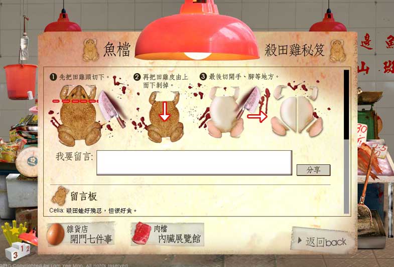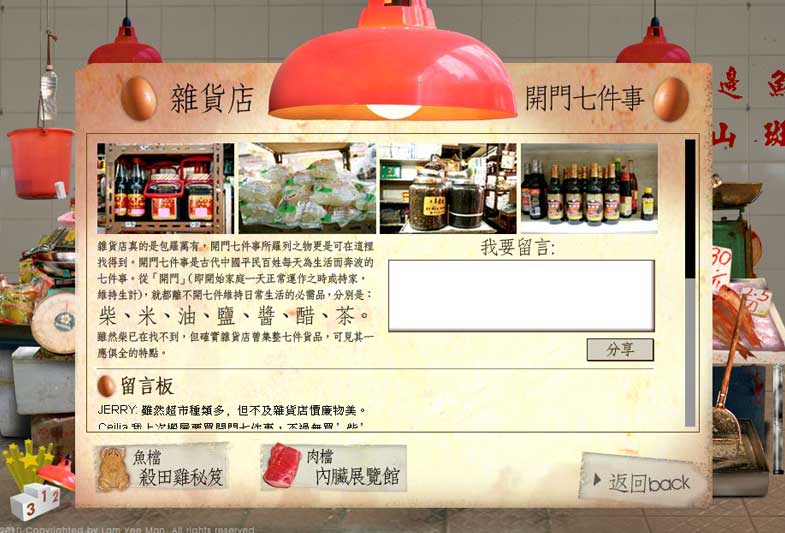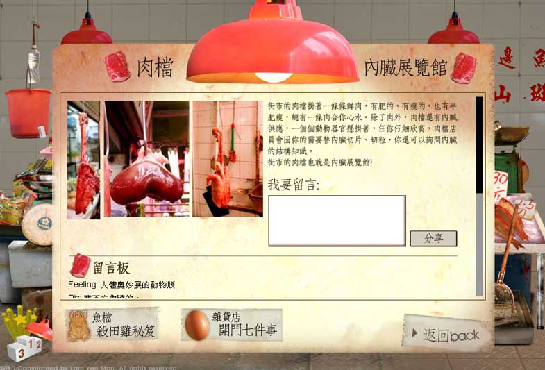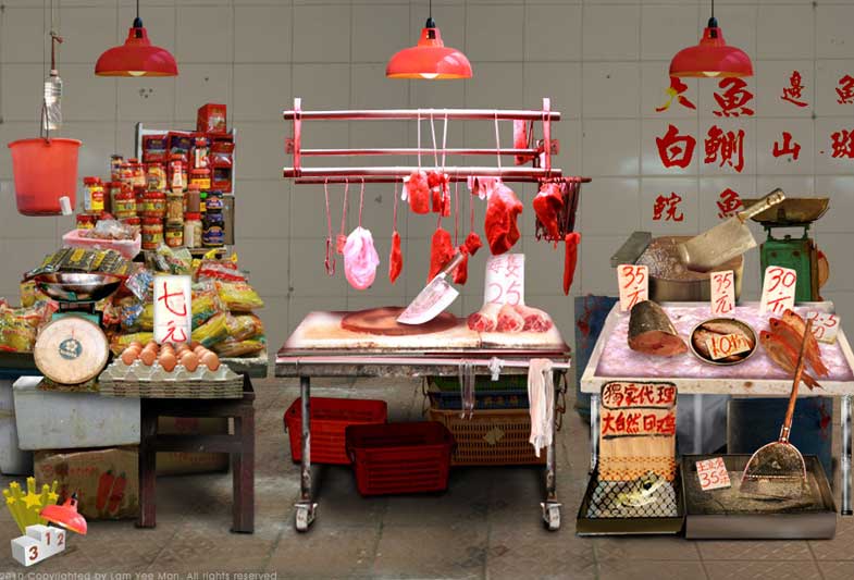 This is an experimental experiment artwork. Wet market is faded out and even forgotten by public. This artwork demonstrates the lifestyle and a range of aspects.
